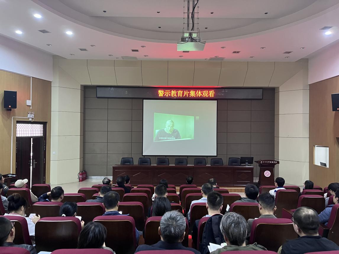 On the afternoon of November 5, 2025, the Party Committee of the School of Foreign Languages (SFL) organized all its staff Party members to collectively watch a warning education film.