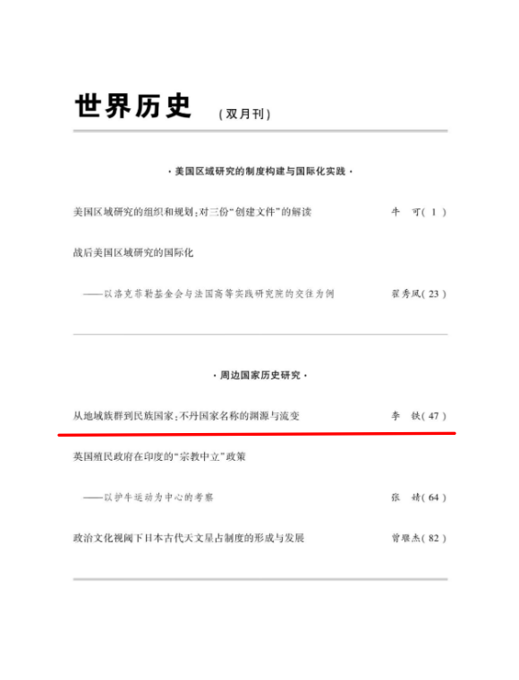 我们李铁教授在世界历史领域顶刊《世界历史》2025年第6期上发表论文《从地域族群到民族国家:不丹国家名称的渊源与流变》。该论文系李铁教授主持的国家社会科学基金一般项目“当代不丹国家治理与现代化道路研究”的阶段性研究成果。此次发表标志着bw必威西汉姆联官网首页在跨学科的区域国别研究领域取得了重要突破,彰显了学院服务国家战略需求、深耕特定区域研究的学术实力与发展潜力。