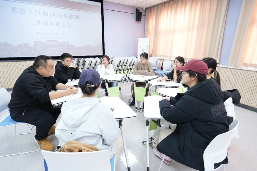 2026年1月14日下午,英语(区域国别实验班)二外师生见面会在长安校区5号楼5409教室顺利举行。本次会议由院长曹若男主持,实验班俄语、阿拉伯语二外教师、院长助理、教务老师及实验班全体学生参会。